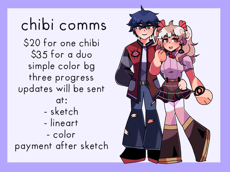 ♡ I am willing to draw OCs, any character from any media, furries, etc. Send me a message if you're unsure.